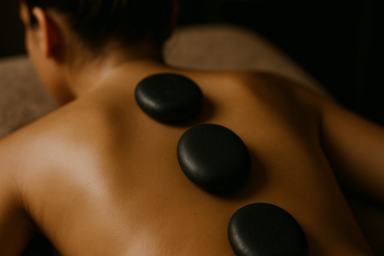 Warme Basaltsteine lösen tief sitzende Verspannungen, fördern die Durchblutung und sorgen durch die Kombination aus sanfter Wärme und ruhigen Massagegriffen für intensive Entspannung und ein Gefühl innerer Ruhe.