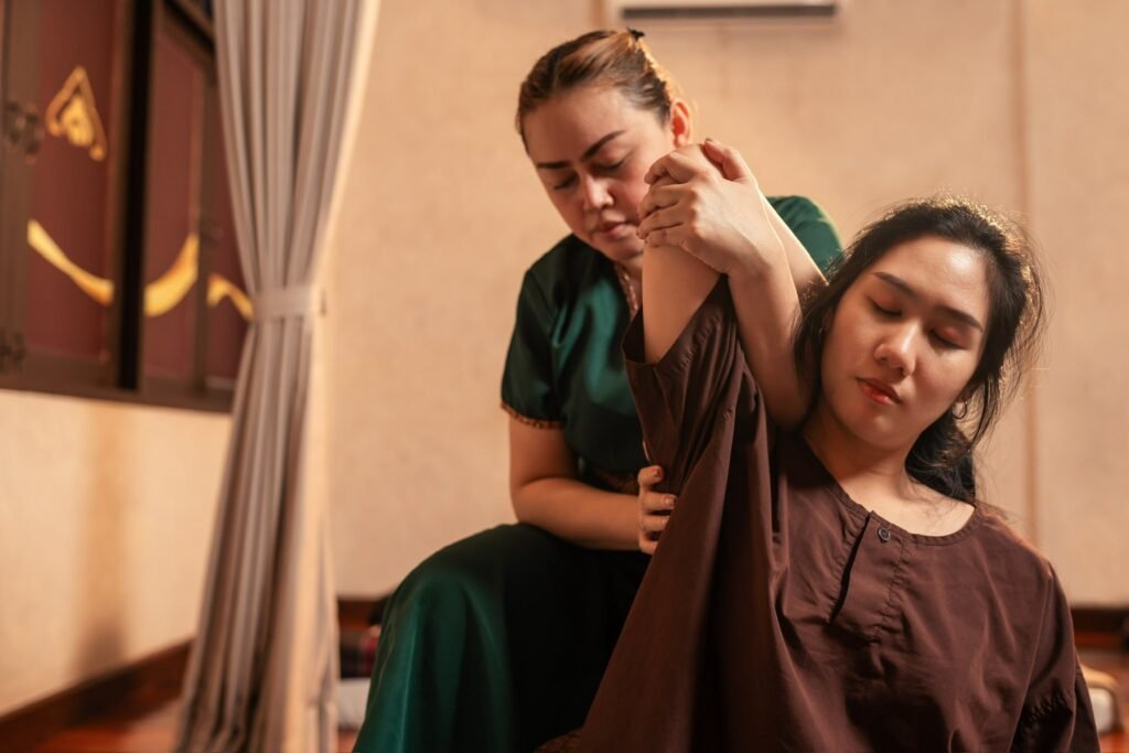 Unsere traditionelle Thai-Massage kombiniert gezielte Druckpunkte, sanfte Dehntechniken und Elemente der Akupressur, um tiefe Verspannungen zu lösen, die Beweglichkeit zu verbessern und den Energiefluss im gesamten Körper zu aktivieren.